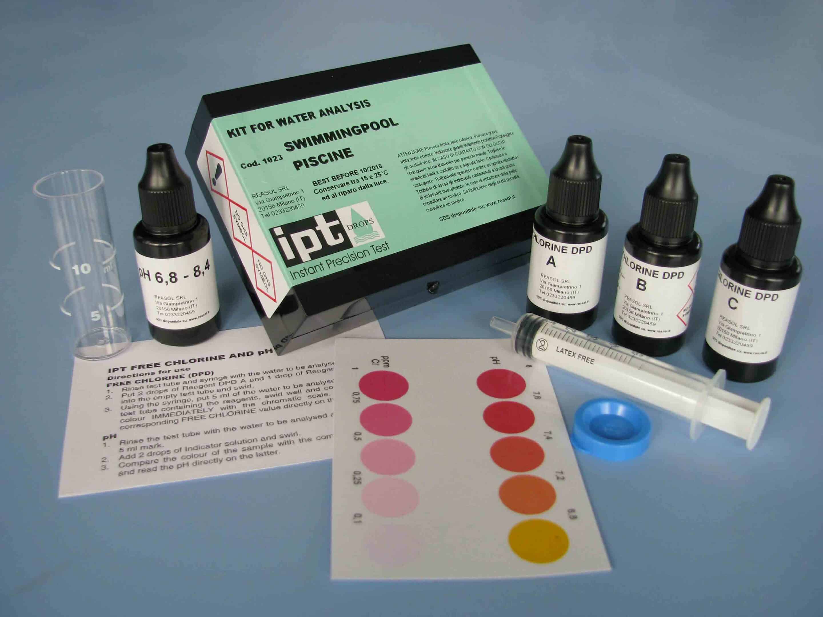 Observations | - Normally swimming pools contain organic substances which can react with chlorine to form chloramine. Therefore, it is advisable to control free chlorine, combined chlorine and total chlorine using the kit 1011 IPT CHLORINE DPD. |